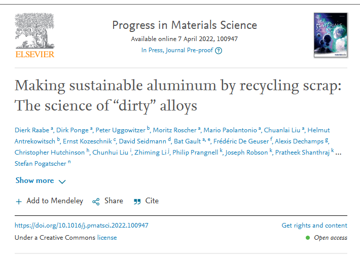 I just wanna share with you guys a recent publication from friends, arising as another international collaboration, where the sustainability of aluminum alloys and plans for the future in the field have been nicely outlined!