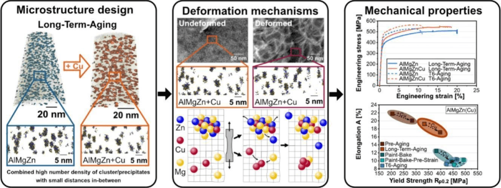 Aster, Philip, et al. “Effect of long-term aging and Cu addition on clustering, strength and strain hardening in Al-Mg-Zn-(Cu) crossover alloys”. Materials & Design (2025): 114341.