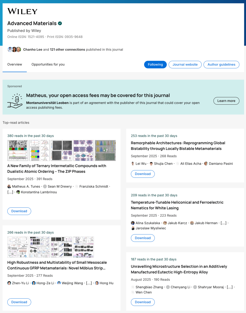 Our work on the discovery of the new Zigzag Intermetallic Phases (ZIP phases) has received an outstanding response from the scientific community on ResearchGate — it is currently featured as the most-read paper of the past 30 days!
